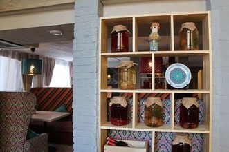 Кафе «Райсан» - двухэтажное вместительное пространство с большими креслами, оформленными в азиатском стиле. Приятные, неприхотливые тона мебели, светильники с уютным освещением, дизайн которых соблюдает восточные элементы, а также деревянные полочки - на них гости обнаружат национальные атрибуты. Для больших компаний имеется отдельно выделенная зона со столиками, где гости могут посидеть большой компанией.